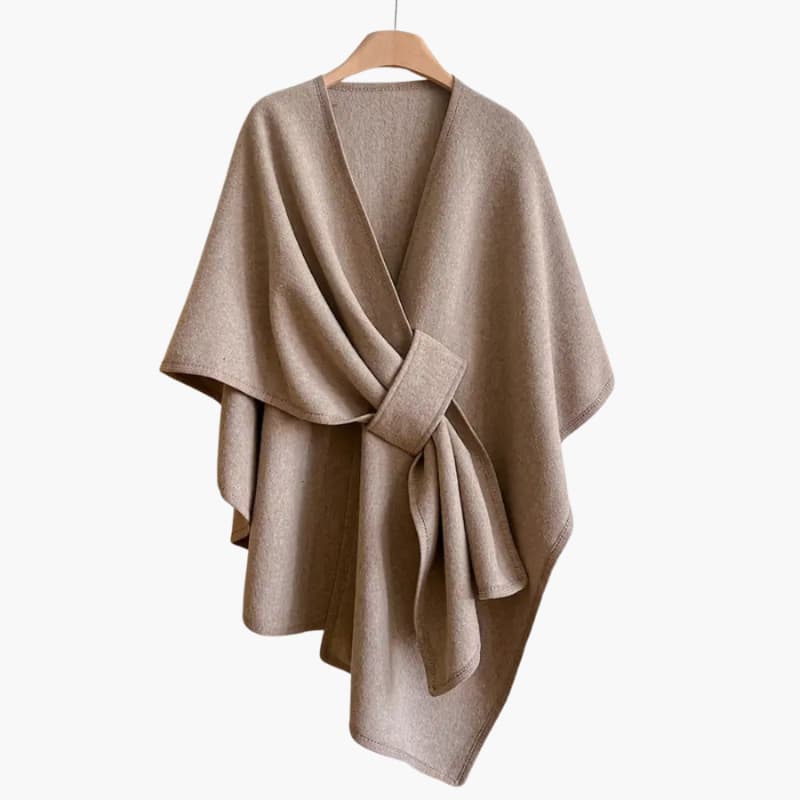 Women’s shawl coat with an open front and non-elastic microfibre blend surface. Designed with a shawl-style neckline and a loose outline suitable for layering. Includes a structured shape for spring, autumn, and mild winter wear. Finished with a plain woven texture and a fold-over collar.